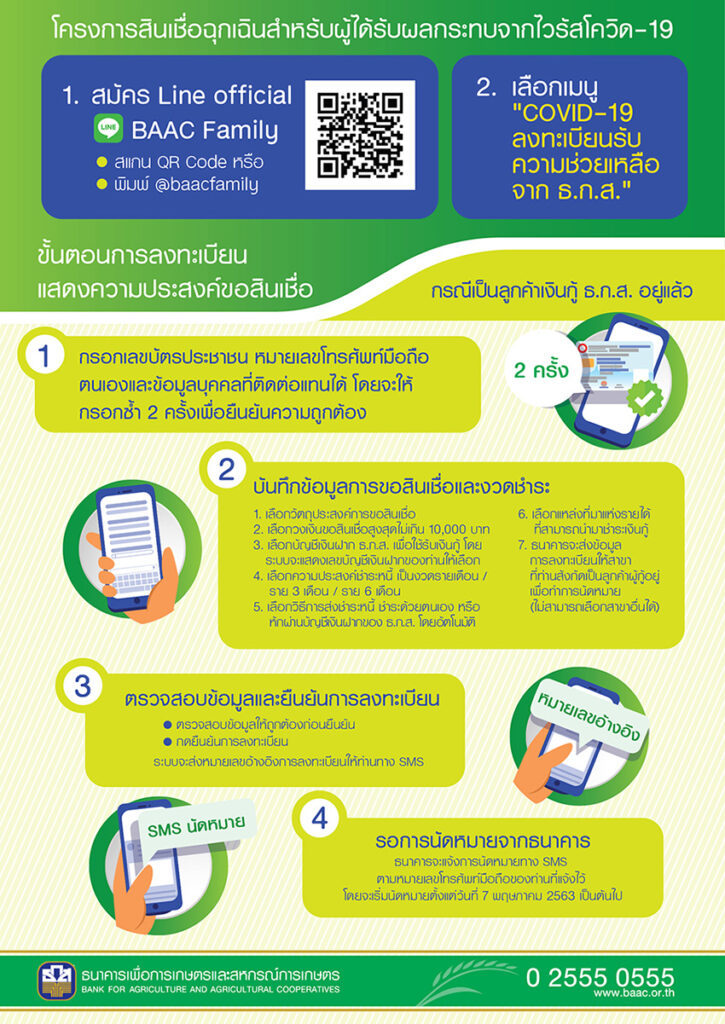 สามารถ ลงทะเบียน ผ่านแอพไลน์ LINE @BAAC Family เท่านั้น และรอนัดหมายทำสัญญาจากสาขา