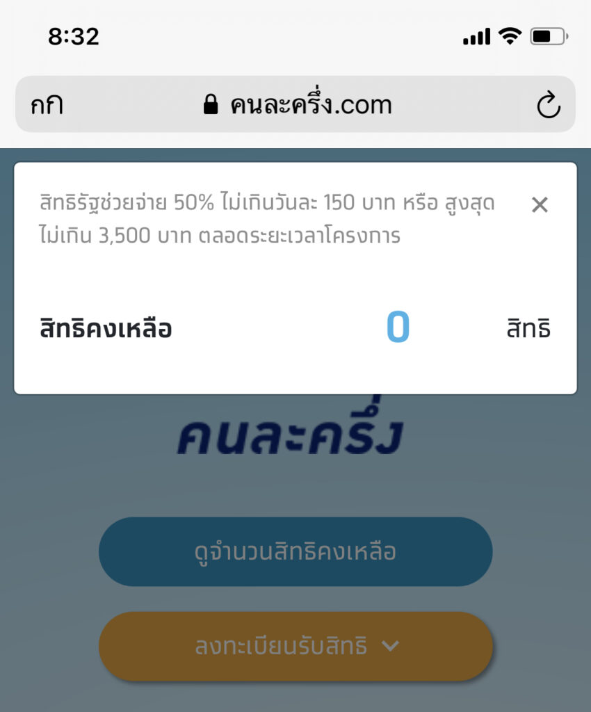 ล่าสุด หลังจากที่เปิดให้ ลงทะเบียน คนละครึ่ง เฟส 2 จำนวน 5,00,000 สิทธิ เวลา 6:00 ปรากฎว่าตอนนี้ เวลา 8:10 นาที มียอดลงทะเบียน เต็มแล้ว โดยระบบขึ้นข้อความว่า สิทธิคงเหลือ 0 สิทธิ ในรอบนี้ ใช้เวลาประมาณ 2 ชั่วโมง ในการลงทะเบียนจนเต็ม ใครที่ลงทะเบียนสำเร็จ ก็ขอแสดงความยินดีด้วยนะครับ