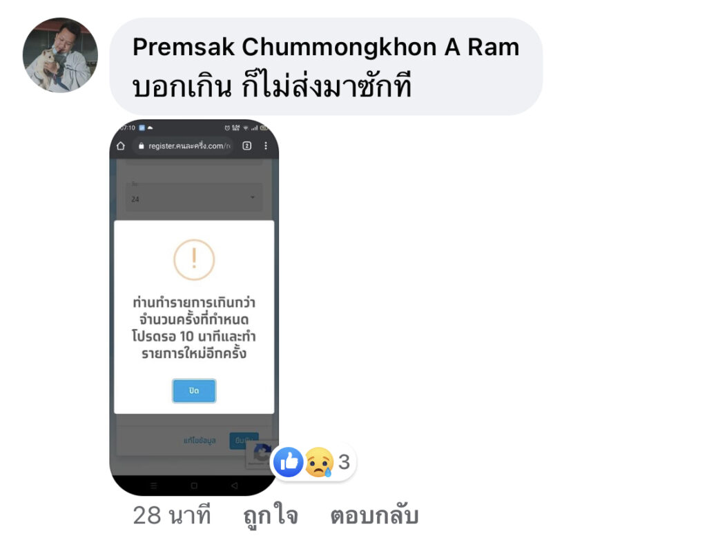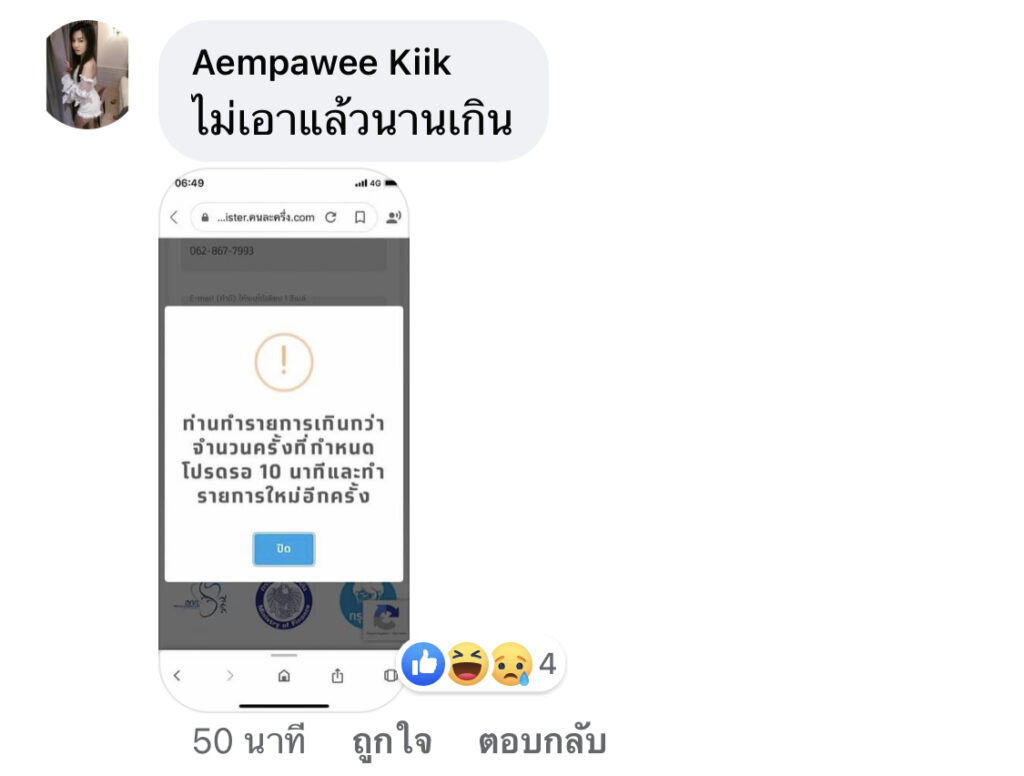 หลายคนเกิดปัญหา ไม่สามารถ ลงทะเบียนต่อได้ เนื่องจาก ไม่ได้รับ รหัส OTP ยืนยันการลงทะเบียน