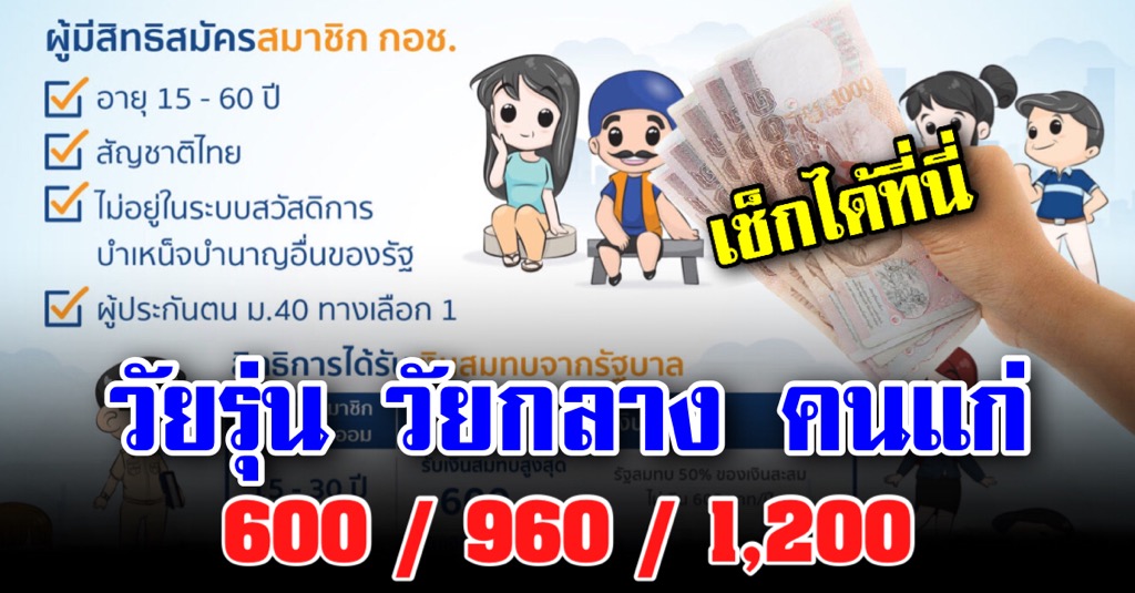สมัครสมาชิก กอช. วัยรุ่นได้เงิน 600 / วัยกลางได้ 960 / คนแก่ได้ 1,200 บาท