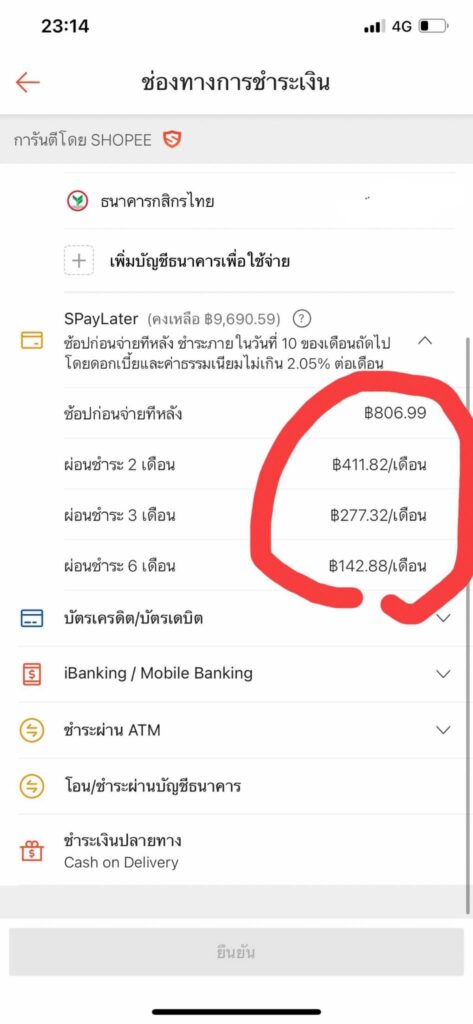 หมายเหตุ: เลือก SPayLater ได้ก็ต่อเมื่อลูกค้าเปิดใช้งานแล้วเท่านั้น