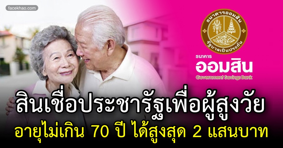 สวัสดีครับ วันนี้ เว็บไซต์เฟสข่าวเรามีสินเชื่อสำหรับผู้สูงวัยมาแนะนำกัน เป็นสินเชื่อประชารัฐเพื่อผู้สูงวัย จากธนาคารออมสิน อายุไม่เกิน 70 ปี ยืมได้สูงสุด 200,000 บาท กันเลยทีเดียว สนใจไปดูขั้นตอนการสมัครกู้ยืมกันเลย
