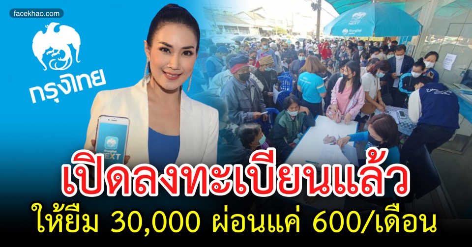 ธ.กรุงไทย เปิดช่วยคนไทยให้ยืม 30,000 ผ่อน 600/เดือน ไม่ต้องค้ำประกัน