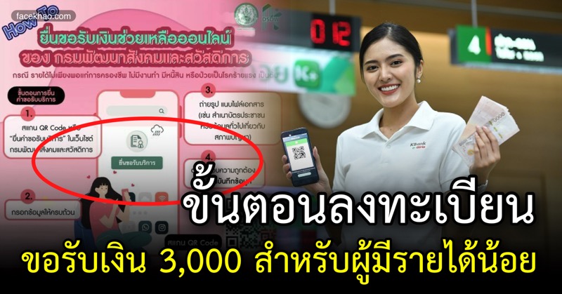 ขั้นตอนลงทะเบียนขอรับ 3,000 บาท สำหรับผู้ที่มีรายได้น้อย