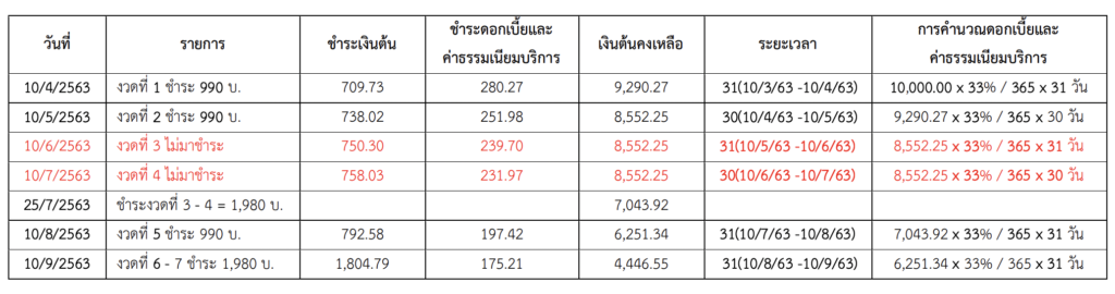 ตัวอย่าง วันที่ 10 มีนาคม 2563 ขอสินเชื่อ 10,000 บาท ท าสัญญา 12เดือน คิดเป็นค่างวด ชำระงวดละ 990 บาทต่อเดือน